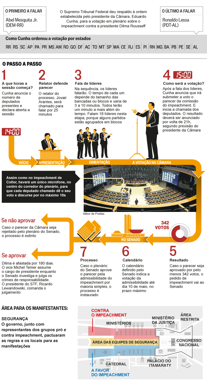 Para ser aprovado o impeachment, a saída de Dilma, a proposta de destituição da Presidente terá de ter 342 votos dos 513 deputados. Por outro lado, para arquivar o pedido, o Governo precisa do apoio de 172 deputados, entre votos a favor, faltas e abstenções.